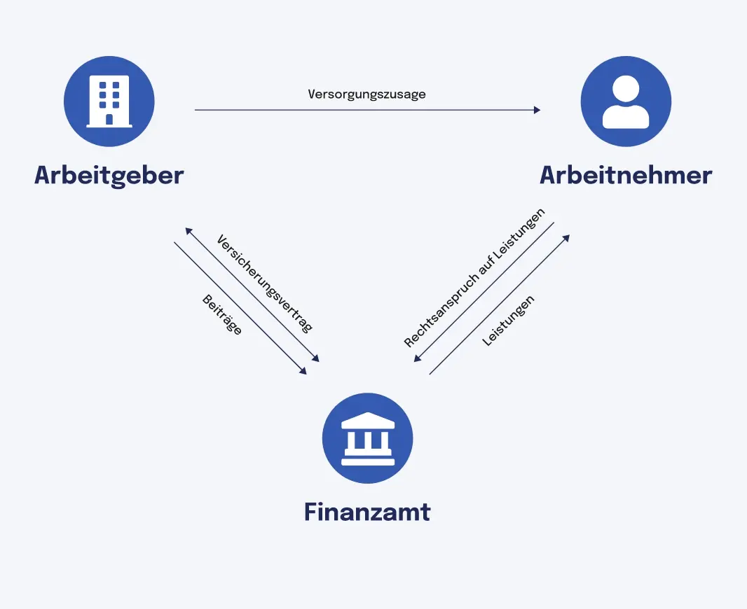 Der Arbeitgeber schließt mit einem Lebensversicherer eine Lebensversicherung ab. Dabei ist der Arbeitgeber Versicherungsnehmer. Der Arbeitgeber zahlt den vereinbarten Versicherungsbeitrag an den Versicherer.